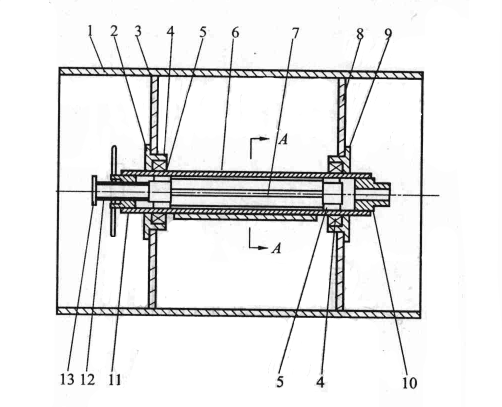 它是由鋼輪、振動軸、中間軸、減震器、連接板等組成。振動輪工作時通過改變振動軸的旋轉(zhuǎn)方向,使固定偏心塊與活動偏心塊方向一致或方向相反來改變振動軸的偏心質(zhì)量,從而實現(xiàn)大幅或小振幅,達到調(diào)幅的目的。偏心軸式振動輪可實現(xiàn)多級變幅,其偏心質(zhì)量分布在偏心軸全長度上,通過調(diào)整活動偏心軸與固定偏心軸的不同轉(zhuǎn)角,可得到不同的偏心力距,從而實現(xiàn)調(diào)幅功能。常用的套軸調(diào)幅機構(gòu)如下圖,它由外振動軸6、內(nèi)振動軸7、幅板8、花鍵套11和擋板13等構(gòu)成。